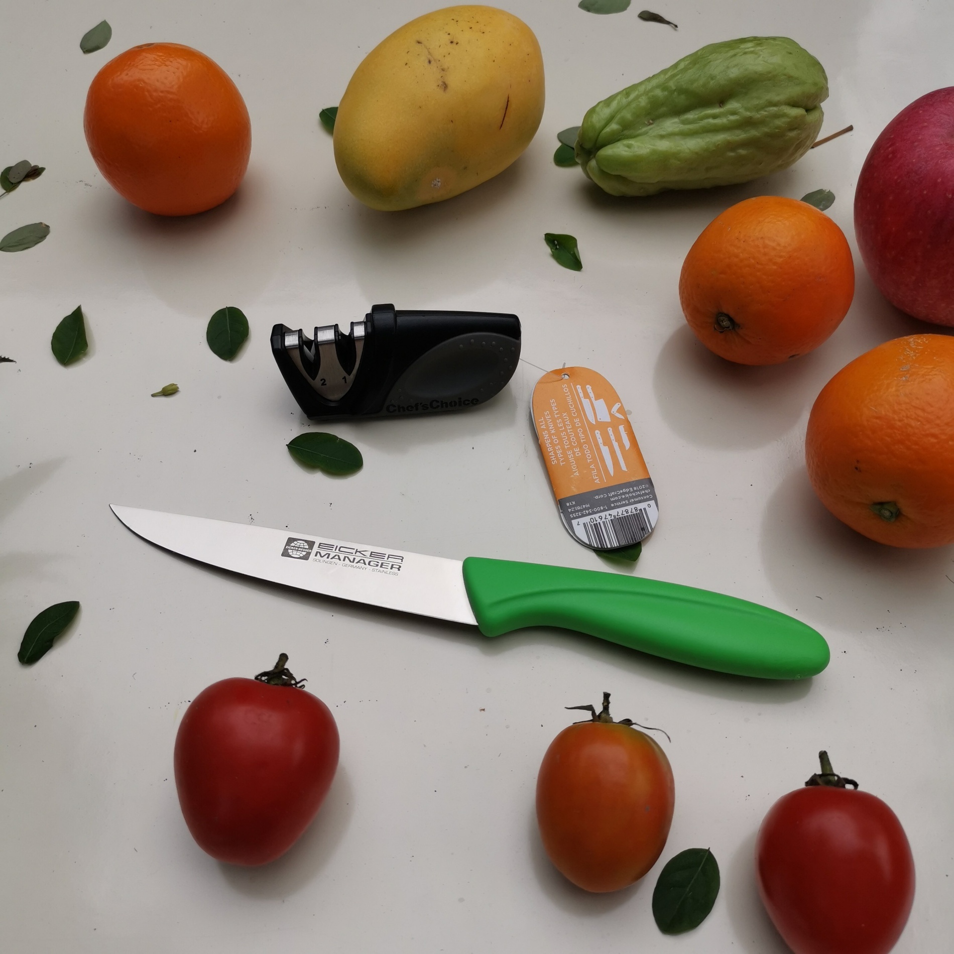 – Nếu mài dao bằng đá mài Việt Nam. Nên mài góc 15 đến 20 độ để đảm bảo dao mài đúng kỹ thuật của hãng, không nên mài dao theo kiểu mài truyền thống Việt nam sẽ làm mất chất thép của lưỡi; sau khi mài xong dùng giẻ khô lau sạch bụi kim dính trên dao.